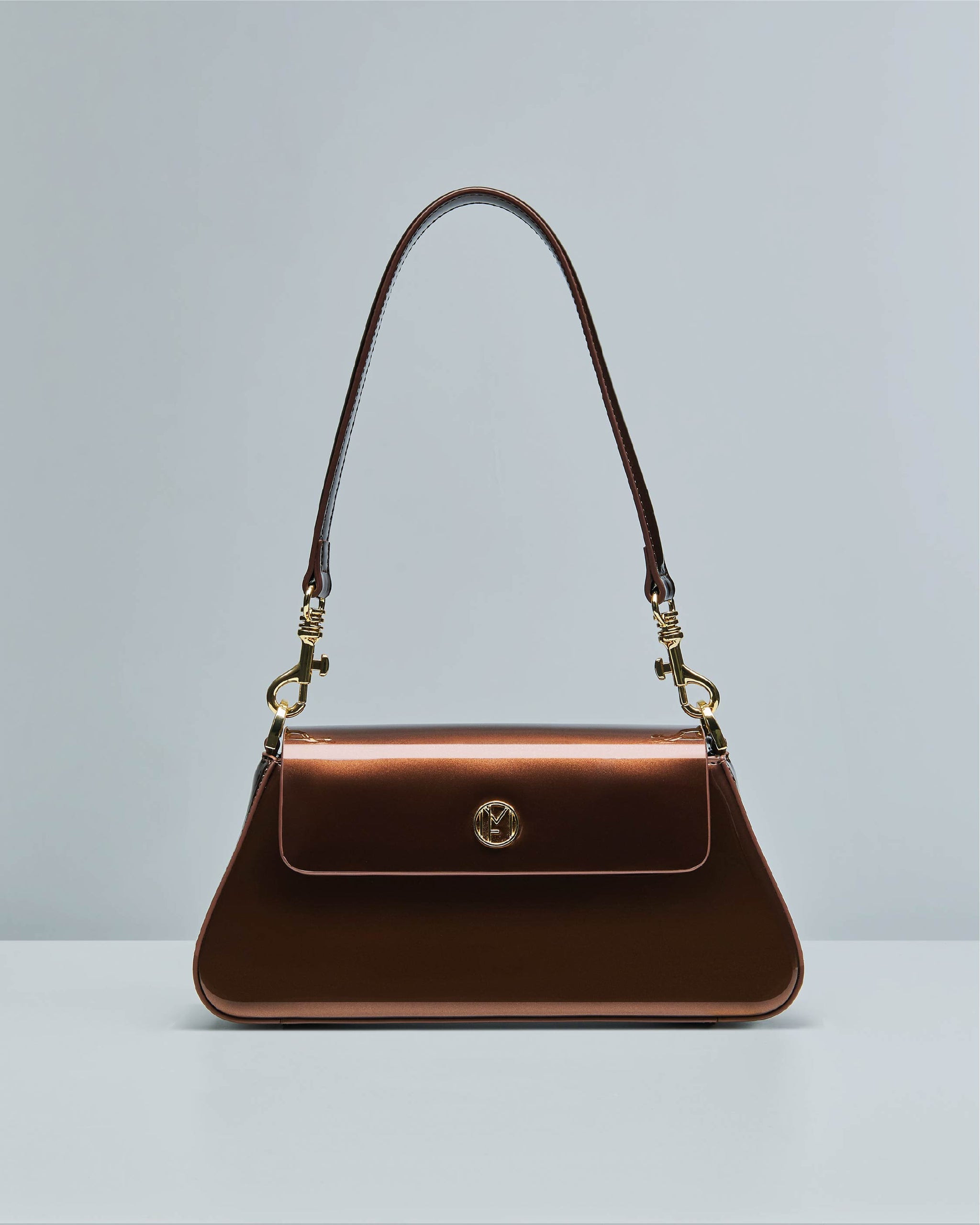 The bag secures itself with a magnetic flap that's strong enough to keep your belongings intact even when the bag takes a tumble upside down. On the inside of the bag, a soft polyester lining with a zipper pocket and an open pocket is tailored to secure any small, valuable items amidst the spacious main compartment of the bag. The bag is completed with gold metal hardware and a signature MF gold logo plaque on its flap.